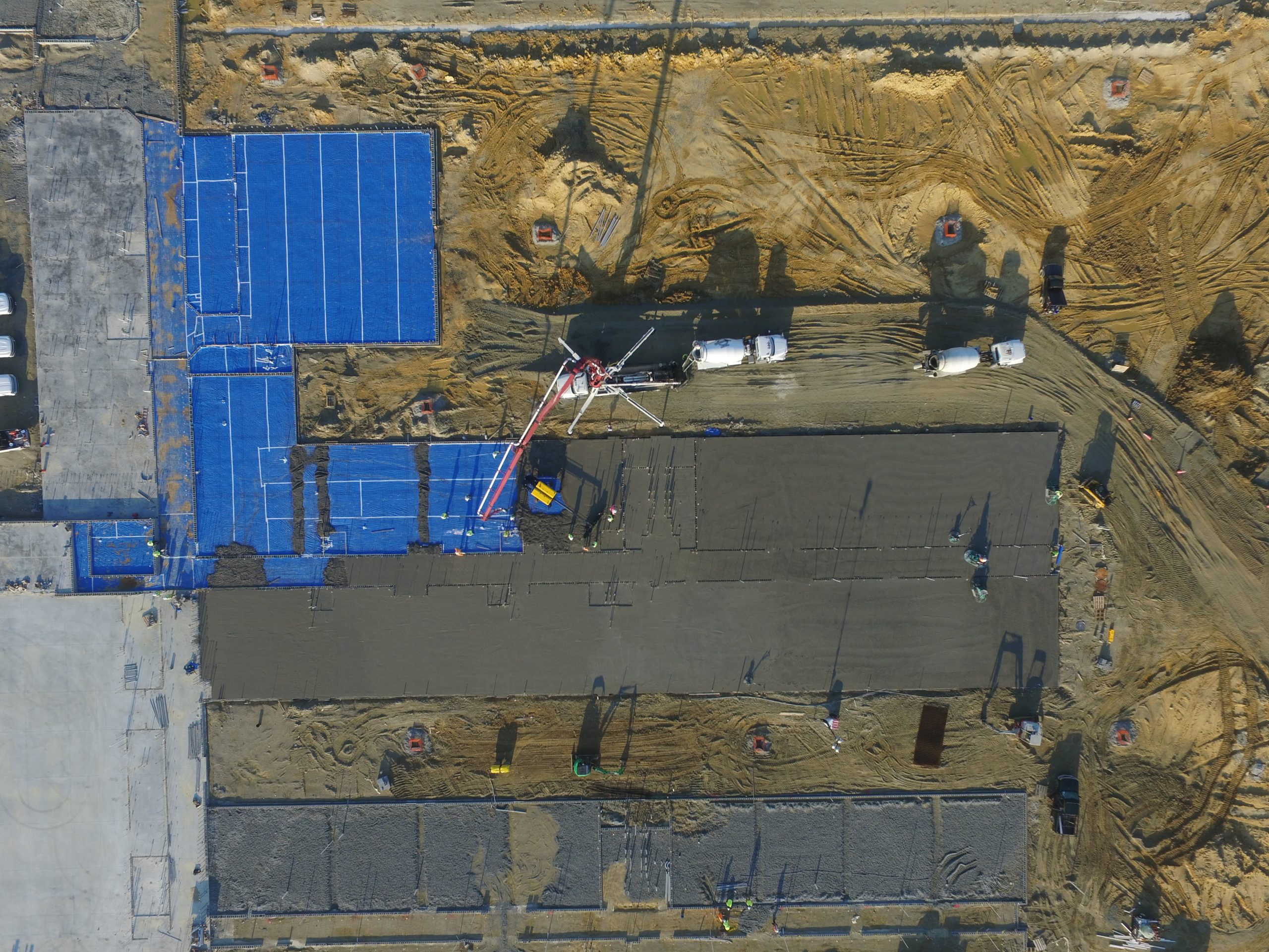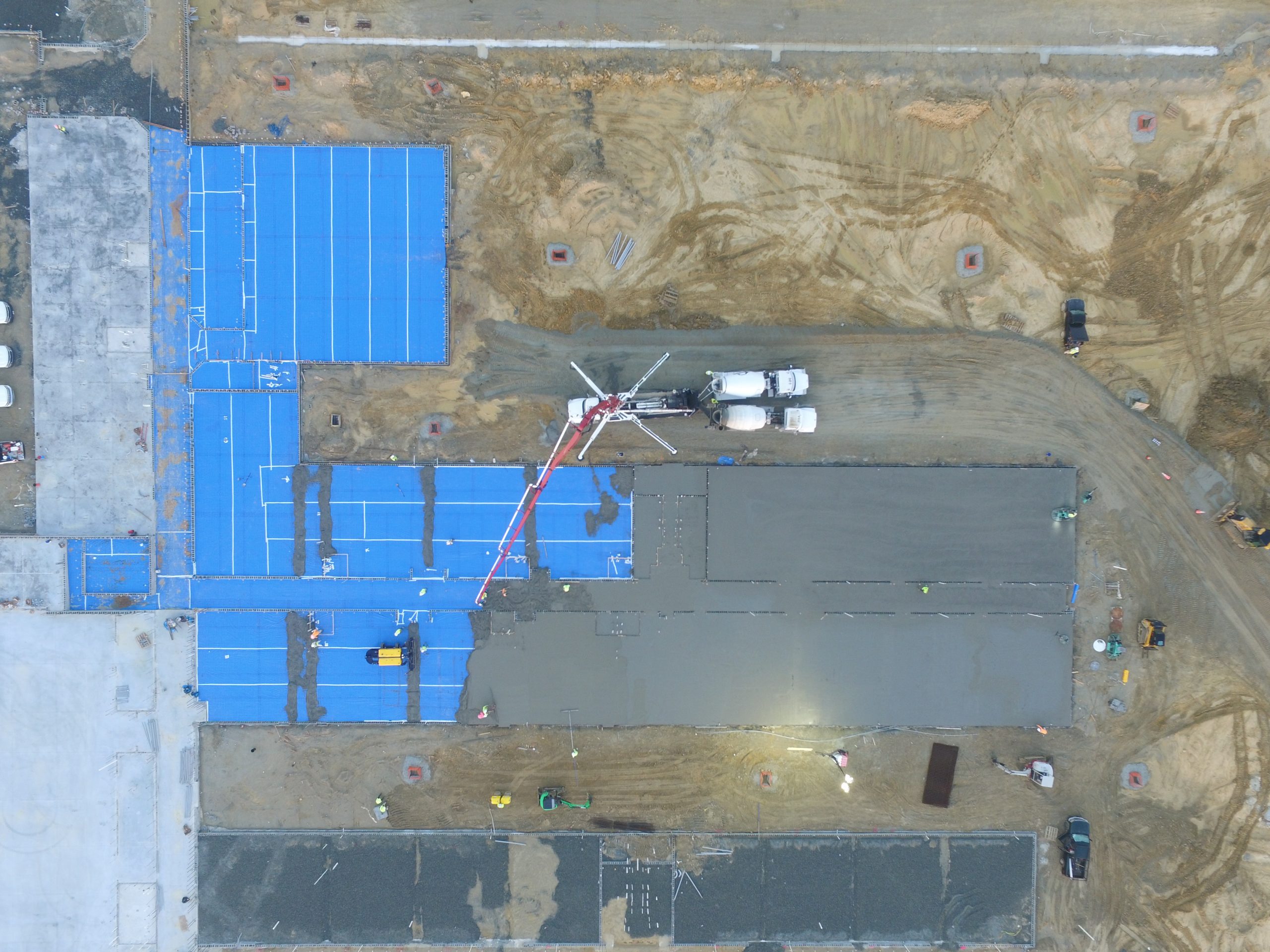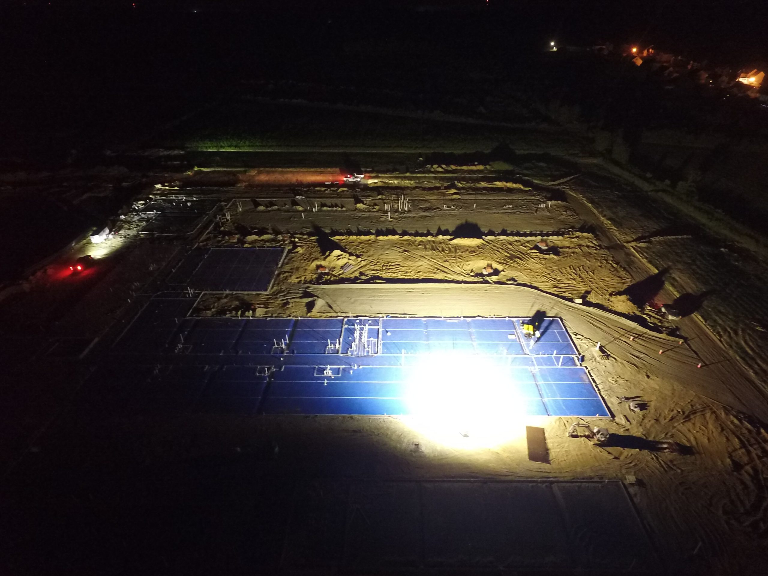 Large concrete placements in the summertime mean very early starts for the project team in order to beat the heat and provide the best quality product. This particular placement at the future site of Catherine Lakes Elementary School in Onslow County began at midnight with setting up the pump truck. The first of many concrete trucks arrived around 1:30 to begin the 10+ hour activity. Brickworks, Inc. has been an excellent partner for Daniels & Daniels and their crews worked tirelessly and efficiently through the morning to completion. The are several more placements to go, but the team has kept up with the schedule even given the heavy rains since the start of the project.