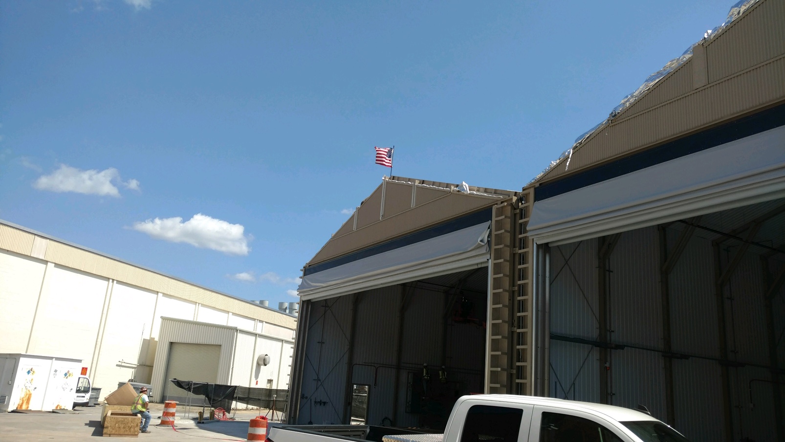 Daniels & Daniels has just reached the “topping out” milestone on two of our projects. Topping out celebrations date back to the Scandinavian culture, with the practice of placing a tree on top of a new building to symbolize growth and bring luck. At D&D, once the last beam has been set, the Red White & Blue is hoisted in place and flies proudly over the project. Congrats to the project teams at the NC DOT Equipment Shop in Greenville and the Laser Peening Facility at Cherry Point!